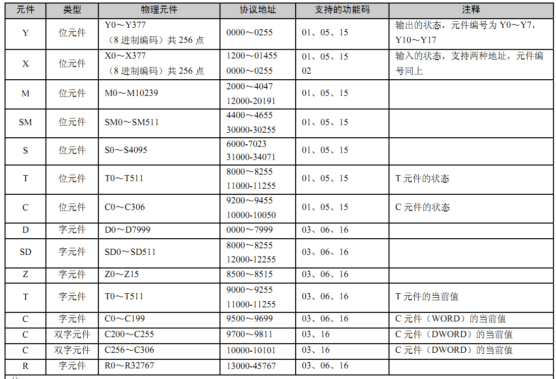 MODBUSµØÖ·±í